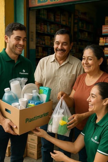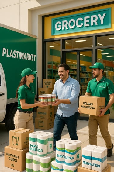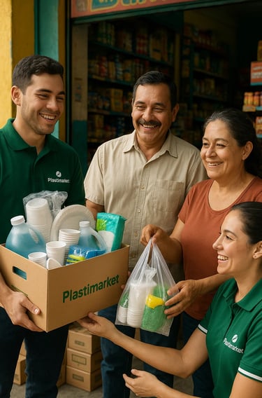Desde vasos, platos y bolsas hasta productos de limpieza y empaque — surtimos tu tienda completa sin que salgas de tu colonia.