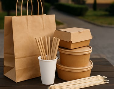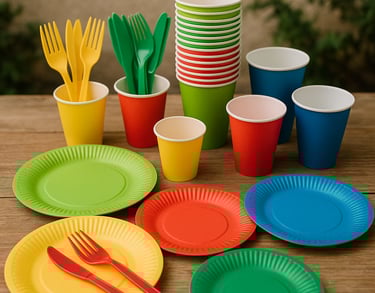 Vajilla y cubiertos desechables, servilletas, mantelería, bolsas, empaques y artículos decorativos.