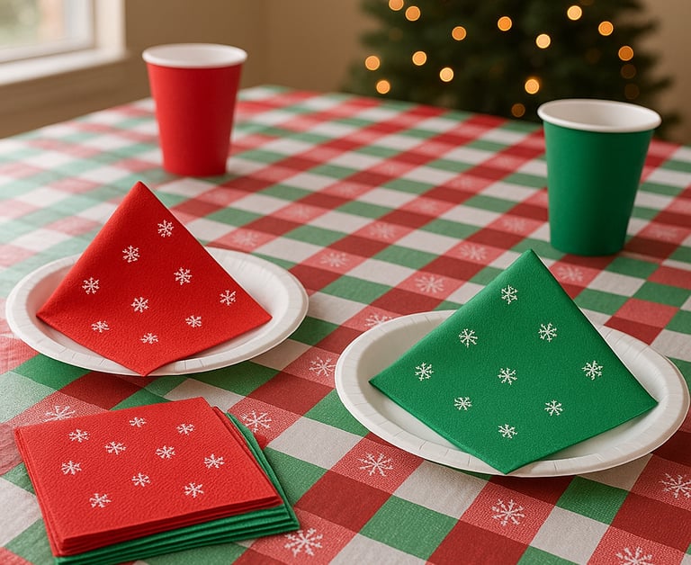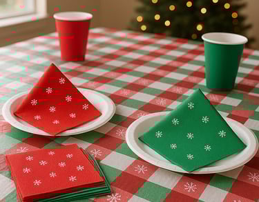 Otro de los productos clave en este checklist insumos fiestas posadas eventos son las servilletas, manteles y caminos de mesa. Ayudan a mantener el orden y complementan la decoración del evento.