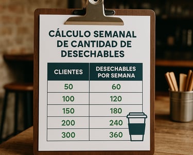 Revisa cuántos clientes atiendes por día y cuántos desechables usas en cada servicio (vasos, platos, cubiertos, servilletas).