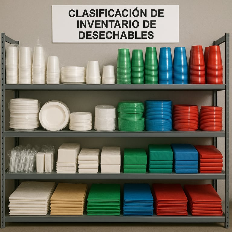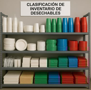 Para organizar inventario desechables, lo primero es clasificar los productos según su tipo: vasos, platos, cubiertos, servilletas y bolsas. También es útil separarlos según la frecuencia de uso o rotación.